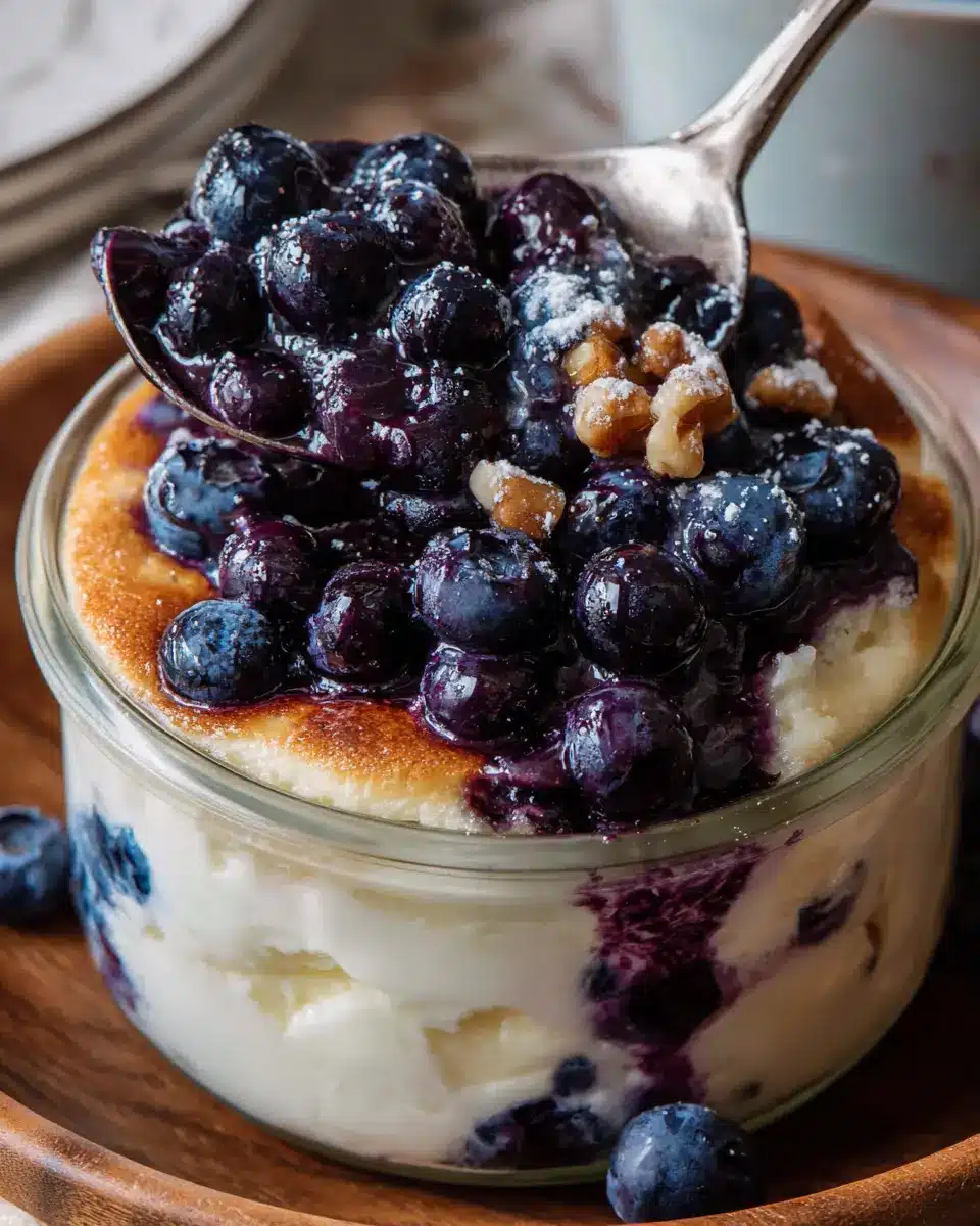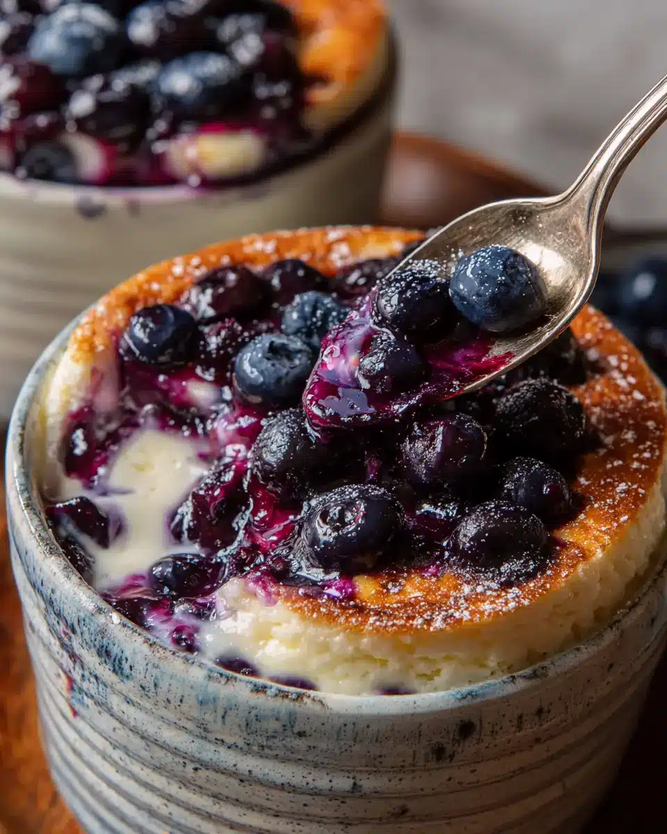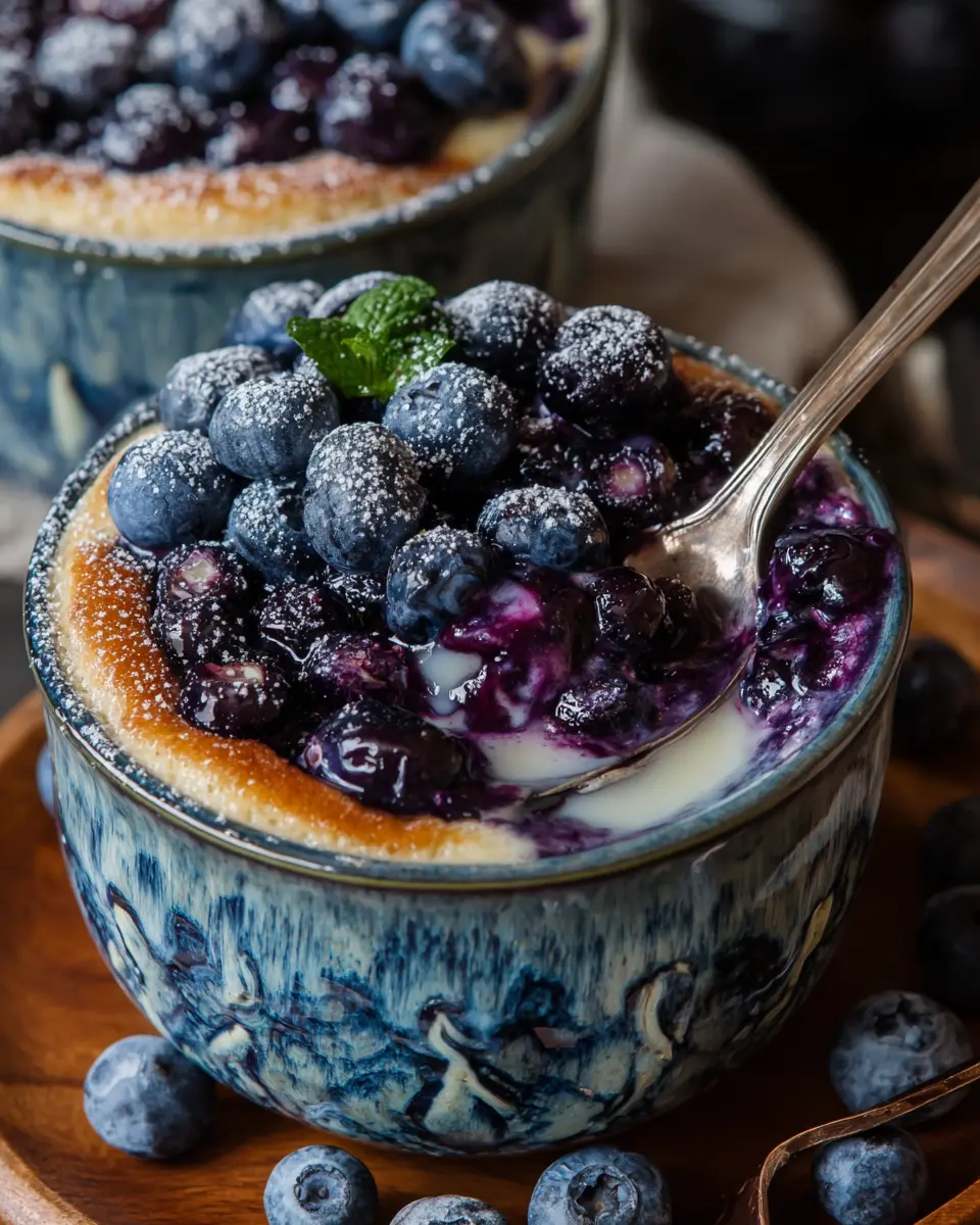 Finally, it’s time to fill those ramekins! Divide your mixture evenly among the prepared ramekins, ensuring that each bowl receives a good amount of that beautiful blueberry mix. Sprinkle the reserved blueberries on top to enhance the visual appeal and taste. Place the ramekins on a baking sheet for easy handling, and bake for 30-35 minutes. You’ll know they’re ready when they’re set in the center and lightly golden on top. Allow the bowls to cool slightly before serving—they’ll be hot and worth the wait!