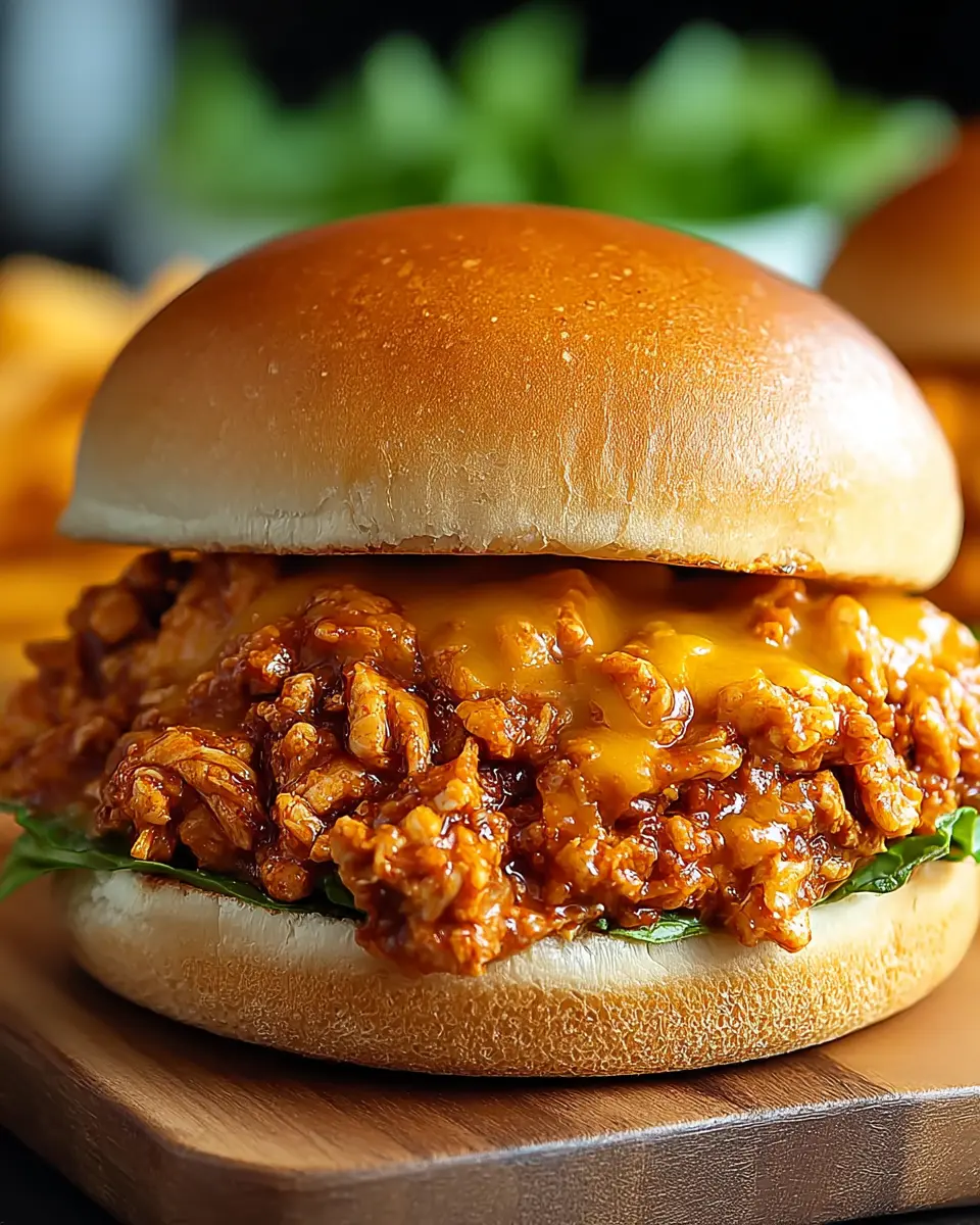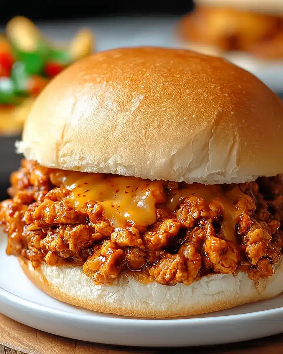 Once your chicken mixture has reached the desired thickness, stir in 1 cup of shredded cheddar cheese until it’s perfectly melted. The cheese adds a creamy texture that pulls all the flavors together, making your Cajun Chicken Sloppy Joe irresistibly delicious. For a little extra indulgence, you could even use pepper jack cheese for added spice.