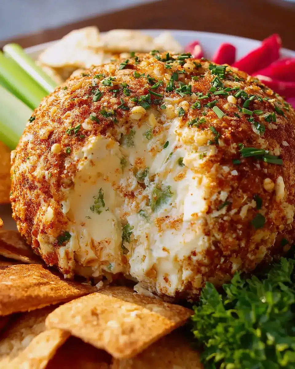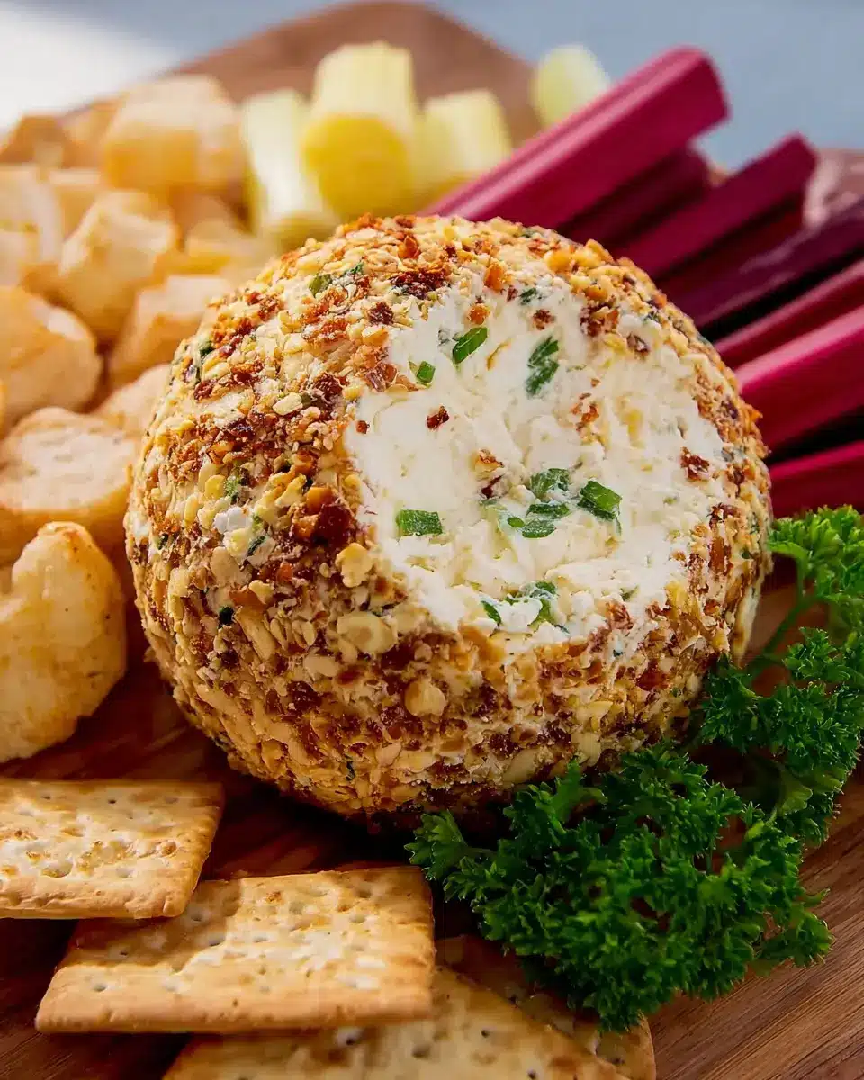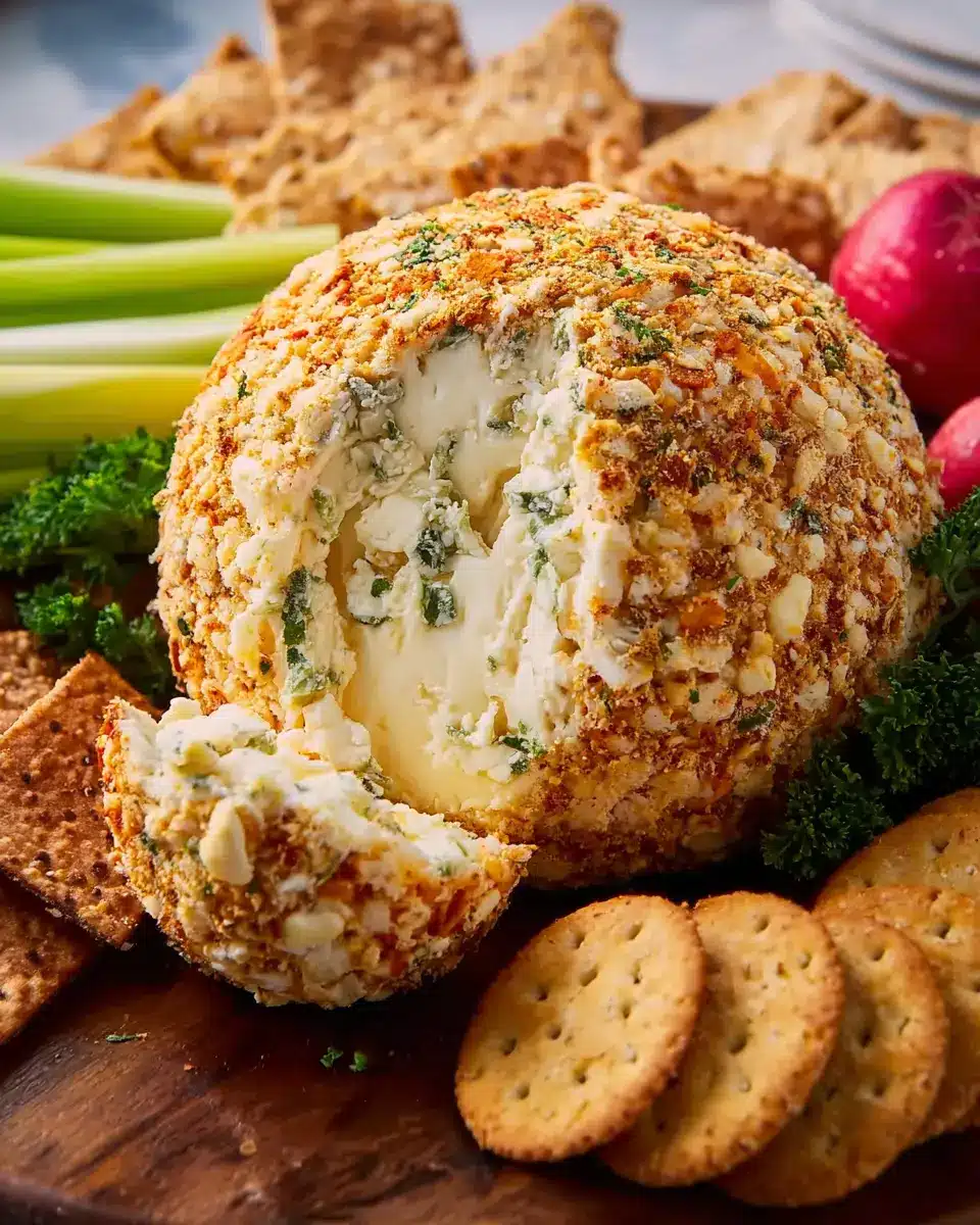 To serve your delicious cheese ball, be sure to have crackers and fresh vegetables, like celery or radishes, on hand for dipping!