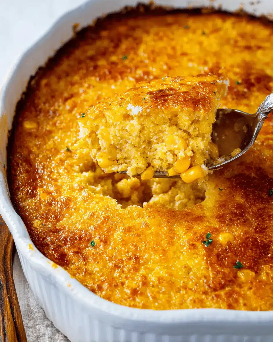 In conclusion, this corn casserole shines as the star of any holiday gathering or weeknight dinner. Its delightful blend of flavors and ease of preparation make it a go-to dish for busy professionals. Share it with friends and family, and enjoy the warmth it brings to your table!