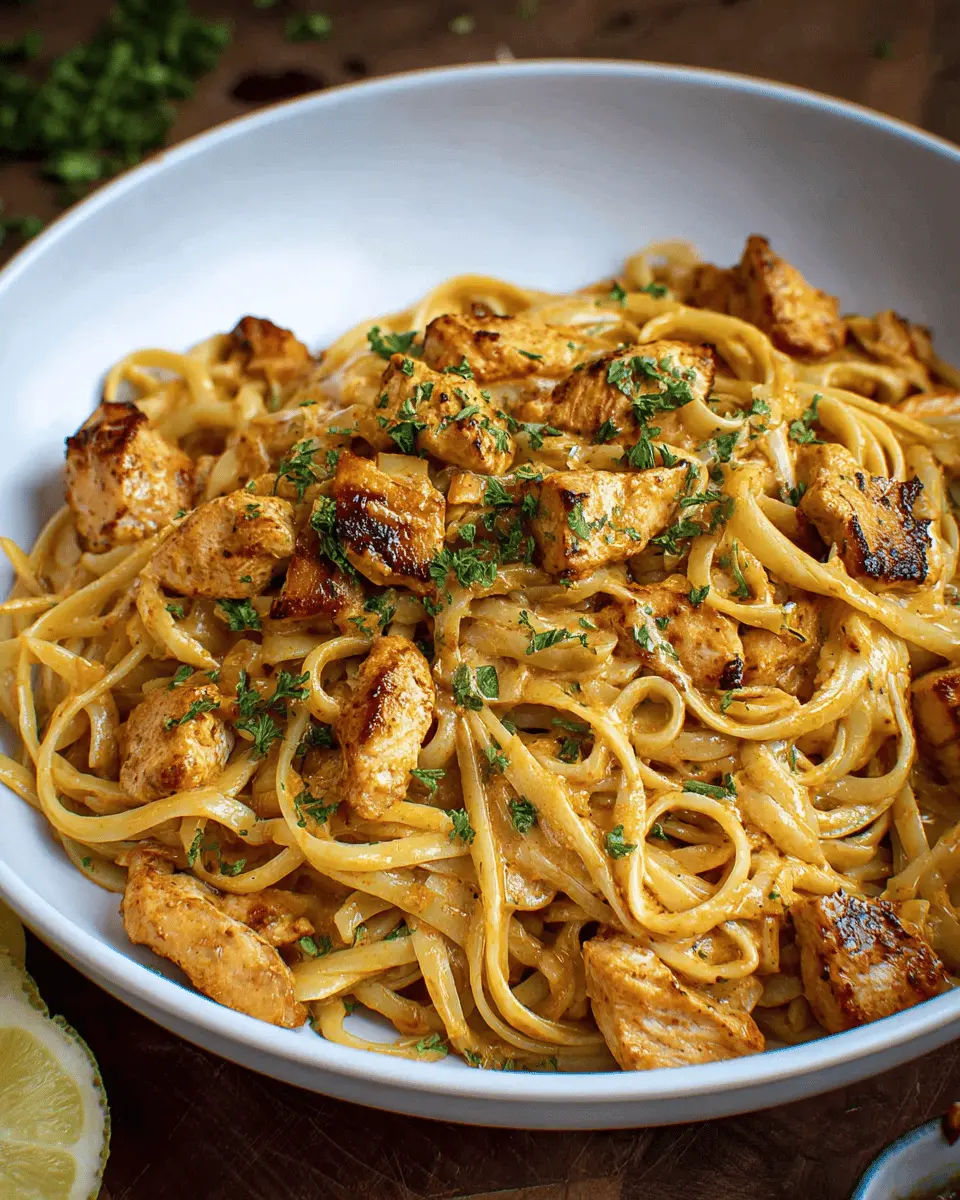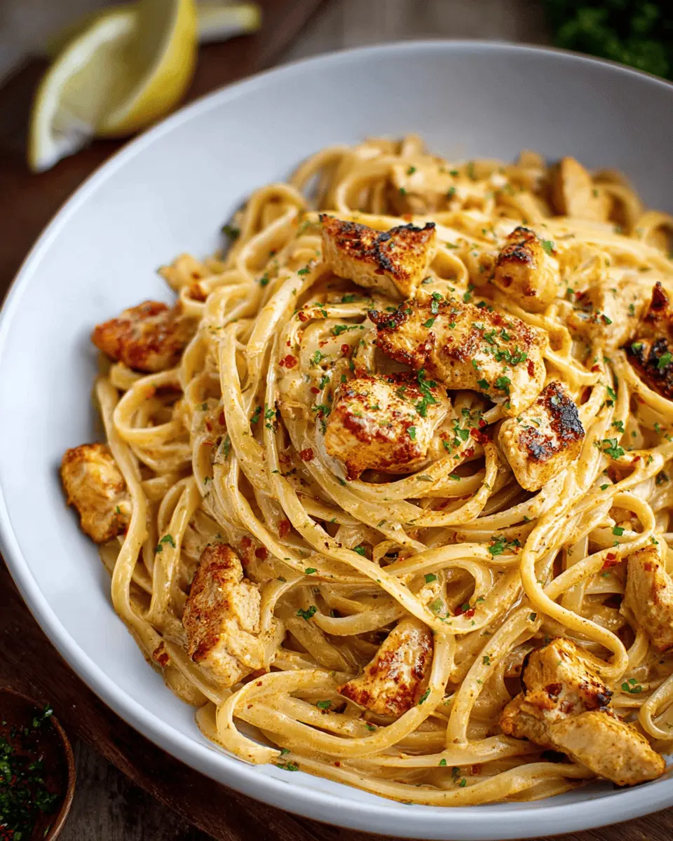 Once everything is well combined, it’s time to serve! Dish out portions of the cowboy butter chicken linguine onto plates. For that stunning finishing touch, garnish with fresh lemon slices and a sprinkle of chopped parsley. Not only does this elevate the presentation, but it also adds freshness to each bite.