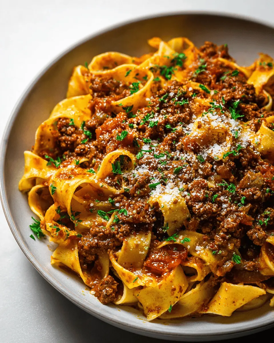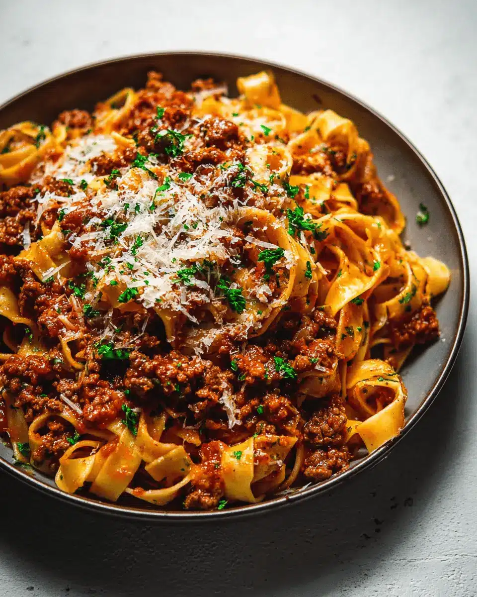 By thoughtfully choosing your pasta and garnishes, you elevate your easy Bolognese from simply delicious to truly extraordinary! For more serving ideas, check out this guide on pasta pairings.