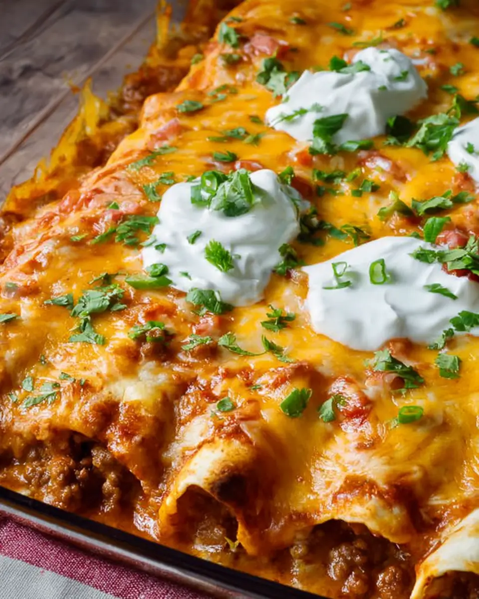 In conclusion, these easy cheesy ground beef enchiladas are not just a meal; they’re a delightful journey full of flavor and comfort. With a handful of simple ingredients, you can whip up a dinner that warms the heart and satisfies the palate. Don’t forget to pair them with fresh cilantro and sour cream for that perfect finishing touch!