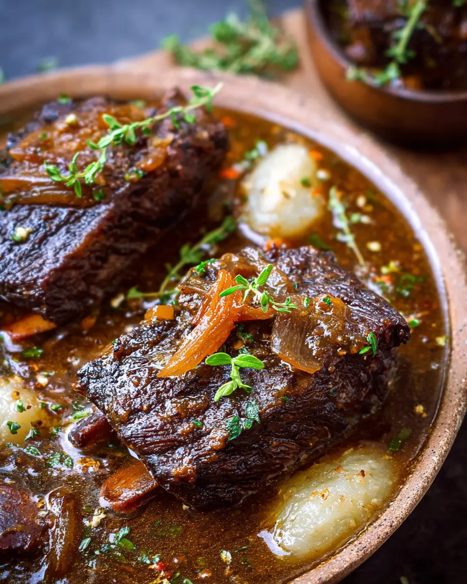 In summary, French Onion Short Ribs is a delightful dish that combines tender beef with a rich onion soup experience, perfect for cozy evenings or impressing guests. With fragrant herbs and warm, cheesy toast, this recipe is a must-try. Enjoy every savory bite! For more delicious tips, check out The Kitchn.