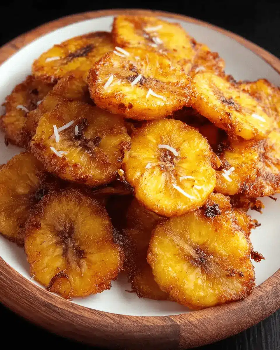 As a Snack: Enjoy the crispy fried plantains on their own as a tasty snack. Consider sprinkling a touch of sea salt for added flavor.