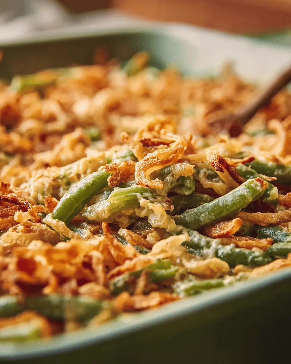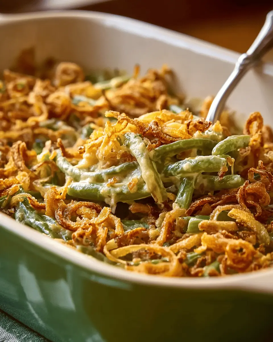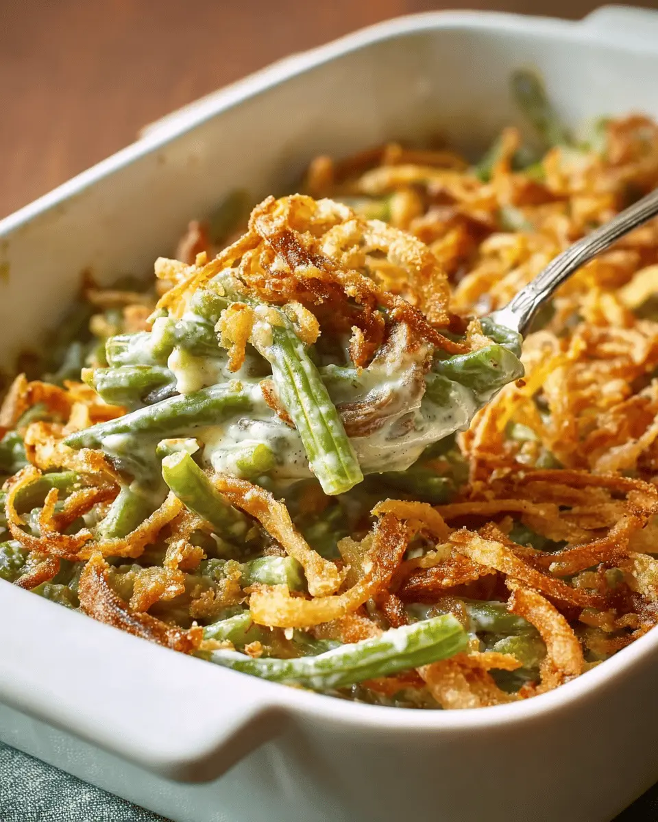 If you have leftovers (which is rare but possible!), reheating is simple. Preheat your oven to 350°F (175°C) and place the green bean casserole in an oven-safe dish. Cover it with foil to prevent the top from browning too much, and heat for about 20 minutes, or until hot. You can also microwave individual portions for quick meals. Just remember to add a sprinkle of fresh fried onions on top before serving to revive that crunchy texture!
