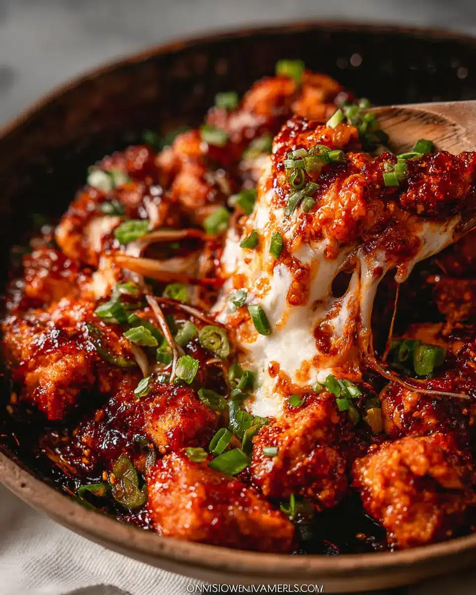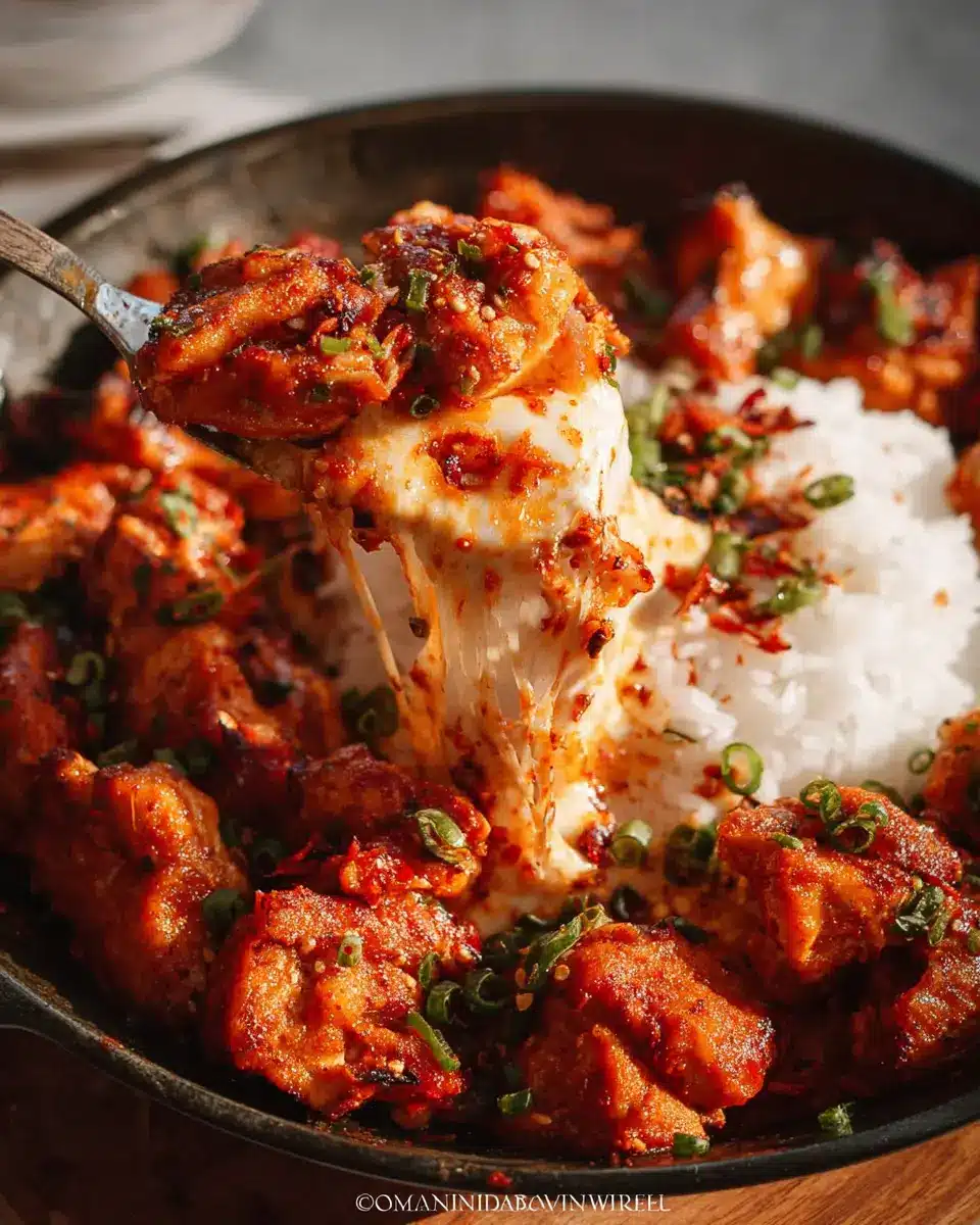 Korean Fire Chicken, also known as Cheese Buldak, is a spicy, cheesy dish that features succulent chicken pieces smothered in a mouthwatering chili sauce. It’s often enjoyed with chewy rice cakes and topped with glorious, melty cheese. This one-pan wonder combines bold flavors and textures, making it a perfect quick dinner option for any night of the week. Whether you’re a spice lover or just looking to spice up your culinary repertoire, this dish is sure to become a favorite!