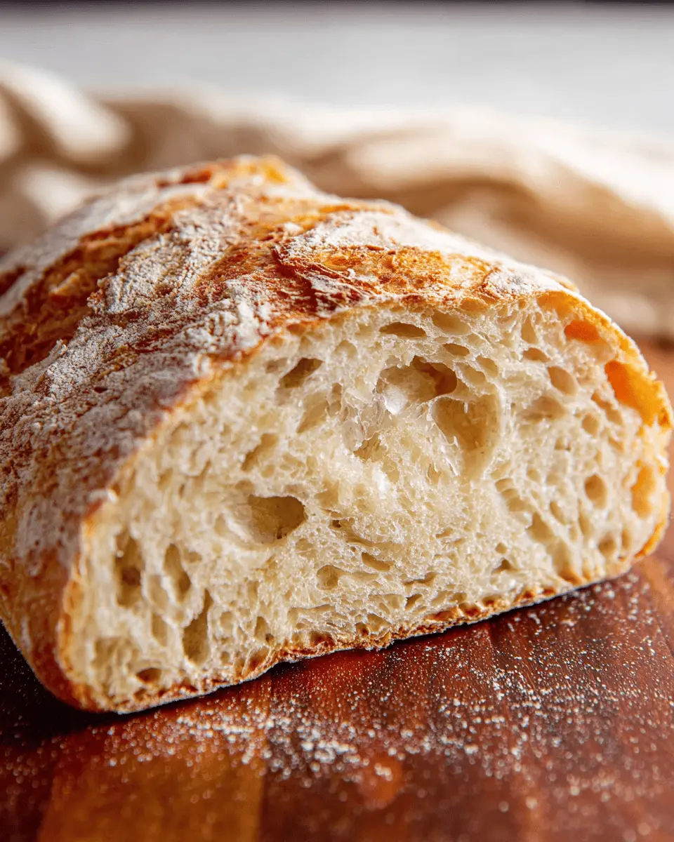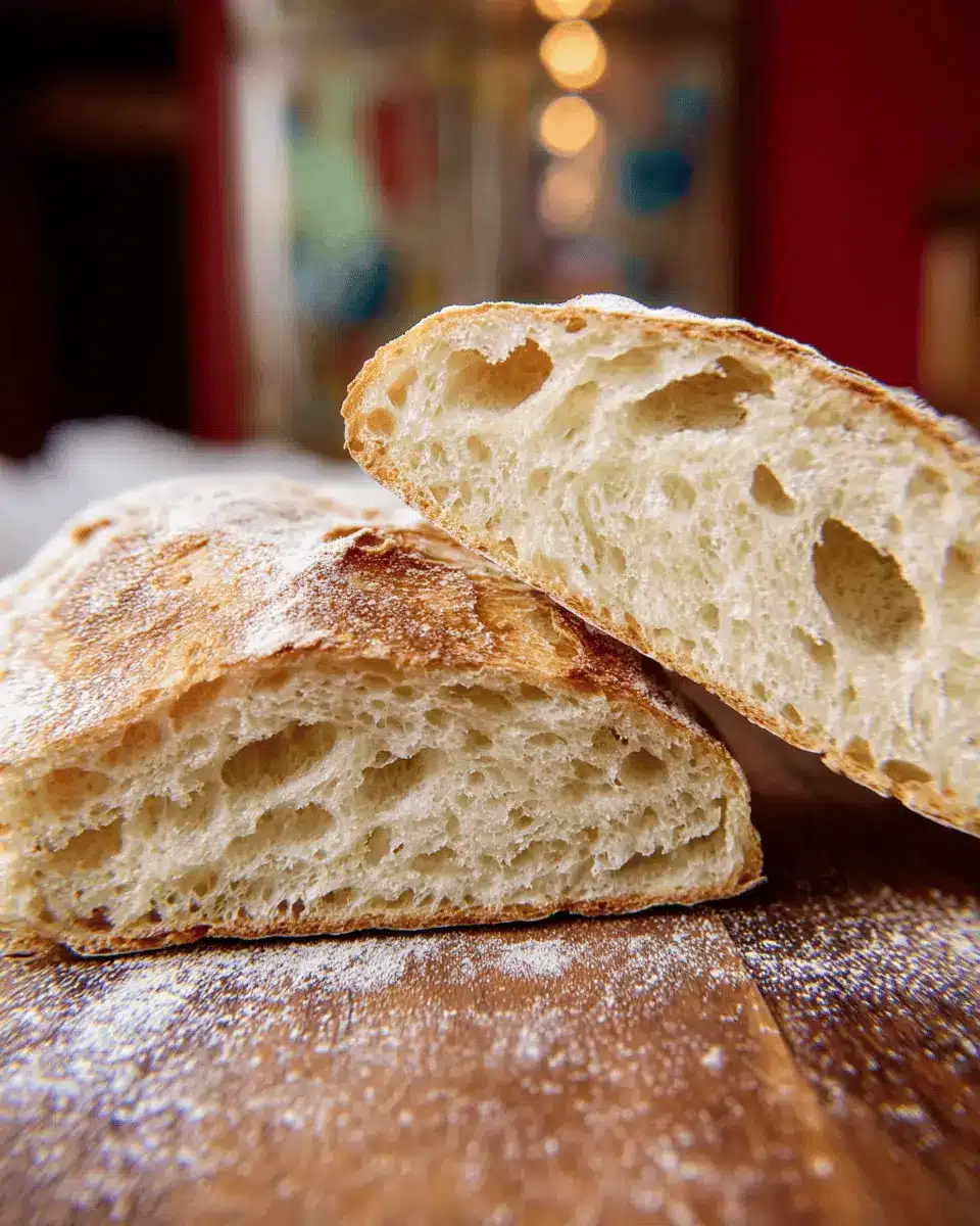 The beauty of this recipe lies in its hands-off approach. You can mix the ingredients the night before and let them work their magic while you sleep. Thanks to the long fermentation time, the dough develops a deep flavor, and you get that gorgeous, chewy texture that ciabatta is known for—all while spending minimal time actually working with the dough.