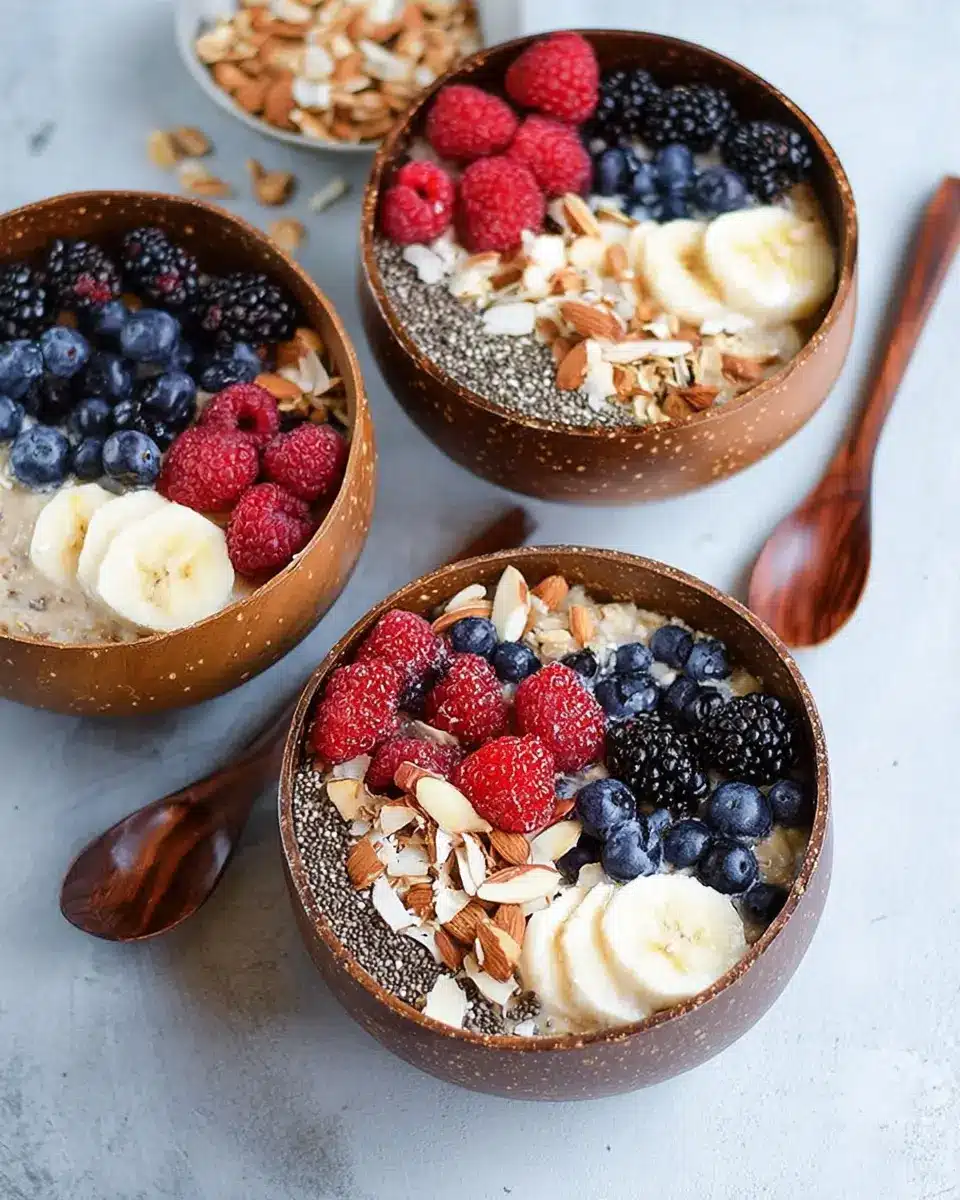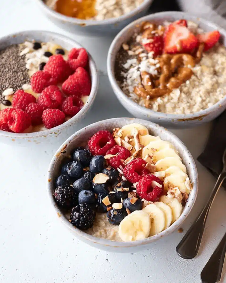 Get creative with your oatmeal breakfast bowls by experimenting with a variety of fruit and nut toppings! Consider adding: