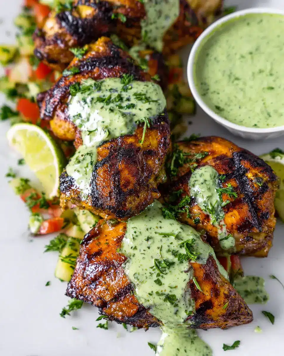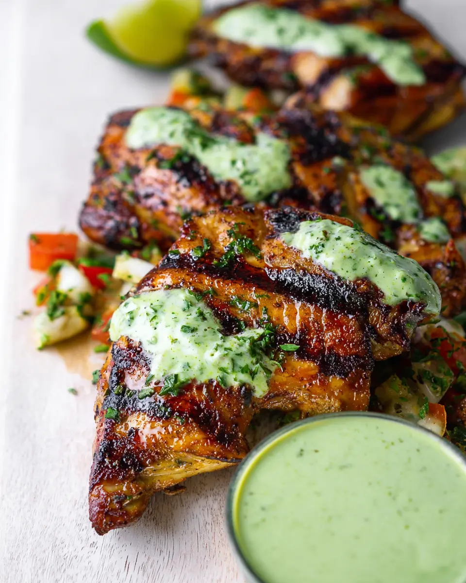 Once cooked, let your Peruvian grilled chicken rest for a few minutes. Arrange the pieces on a platter, and don’t forget to present the creamy green sauce in a lovely bowl on the side. This dish pairs perfectly with sides like fried yuquitas or even a light salad.