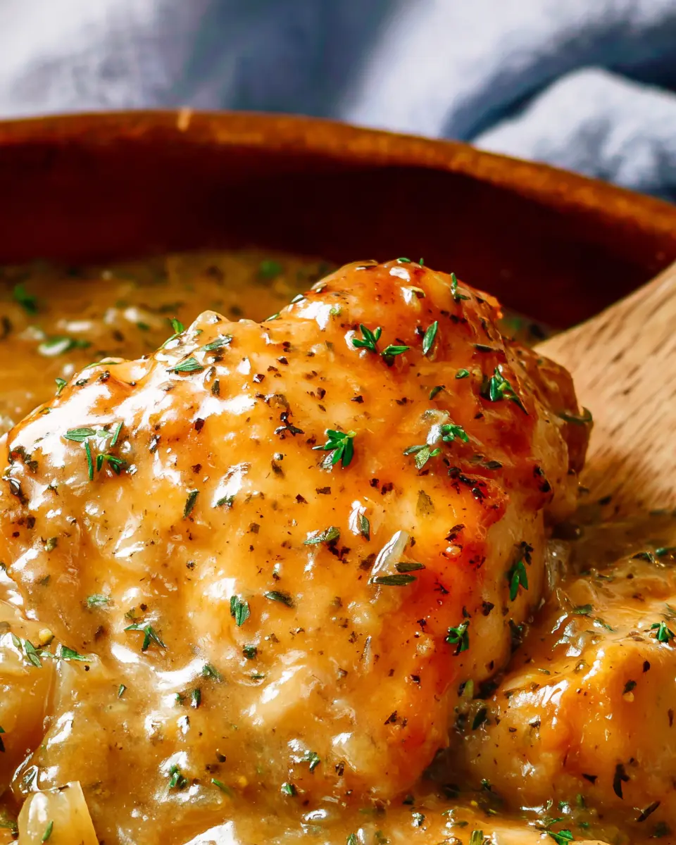 Lastly, return the chicken and onions to the skillet, stirring well to coat them in the luscious gravy. Cover the pan for a few minutes to let everything meld together beautifully. Before serving, don’t forget the secret ingredient: stir in a tablespoon or two of Greek yogurt for that creamy finish. Serve over hot mashed potatoes, and watch as your family digs in happily. Enjoy every bite!