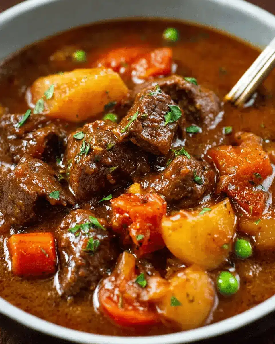 Absolutely! If you’re short on time, you can follow the initial steps of browning the meat, then simmer everything in a large pot. Bring it to a boil, then reduce to a low heat and let it gently cook for about 1-2 hours, stirring occasionally until the potatoes are tender. This method will yield a fantastic stew just like the slow-cooked version. For more tips on cooking alternatives, check out resources from The Kitchn.