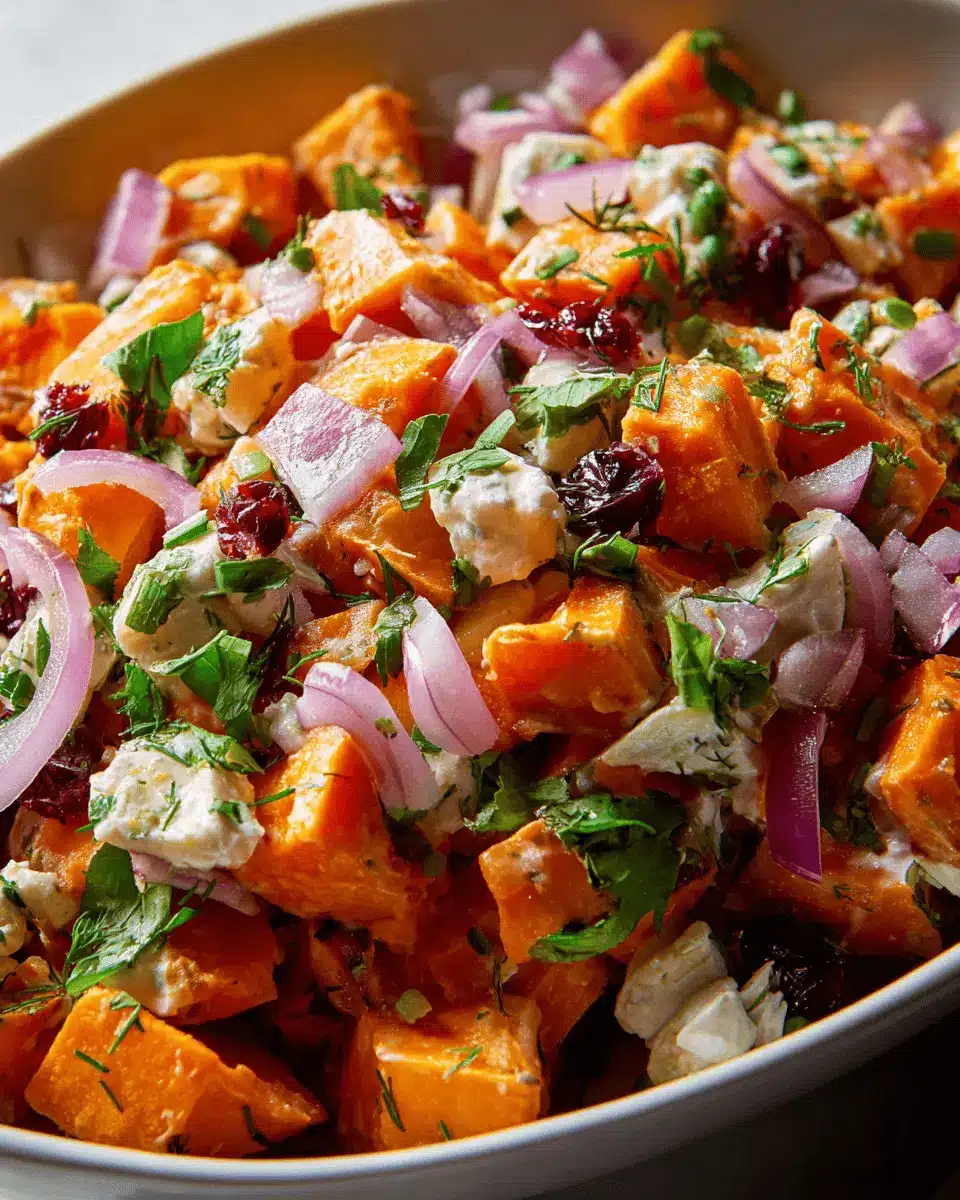Sweet potato salad is more than just a dish; it's a vibrant, nutritious option that fits seamlessly into the busy lives of young professionals. In an age where healthy eating is often sidelined by convenience, sweet potato salad stands out as a ready-made work lunch or a delightful side dish for gatherings. This salad combines the sweet earthy flavors of roasted sweet potatoes, the tang of feta cheese, and the pop of cranberries, resulting in a balance that’s satisfying yet light.