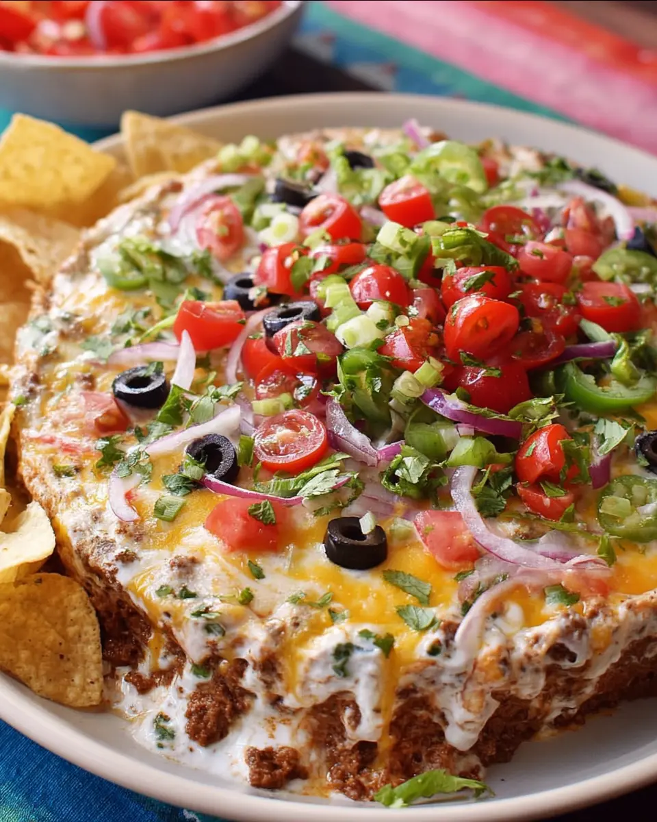 Taco dip is a delightful crowd-pleaser for any gathering! Quick to prepare, it combines creamy, spicy, and fresh flavors for a party in your mouth. Ideal for entertaining, this dip pairs perfectly with tortilla chips. So, grab your ingredients and dive into this tasty treat! Happy dipping!