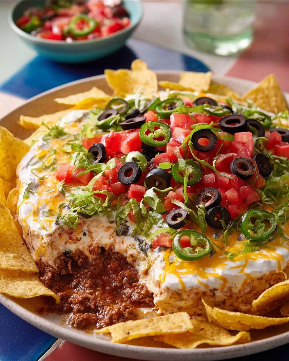Layer your ingredients creatively! Start with the cream cheese mixture, then build your toppings like a taco bar. Finish with fresh herbs like cilantro for a pop of color and flavor. For hosting, serve with an assortment of tortilla chips, nachos, and veggie sticks for dipping.