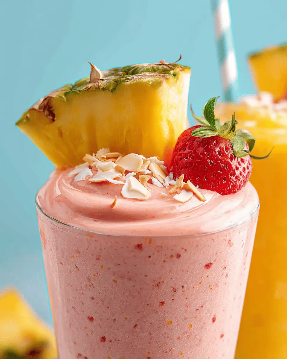 Elevate your tropical smoothie with fun and colorful garnishes! Consider adding fresh mint leaves for a burst of flavor and vibrant color. You can also sprinkle shredded coconut or a few chia seeds on top for added texture and nutrition. For a playful touch, place a slice of pineapple or a fresh strawberry on the rim of the glass. These simple additions not only make your drink look stunning but also enhance the overall tropical experience.