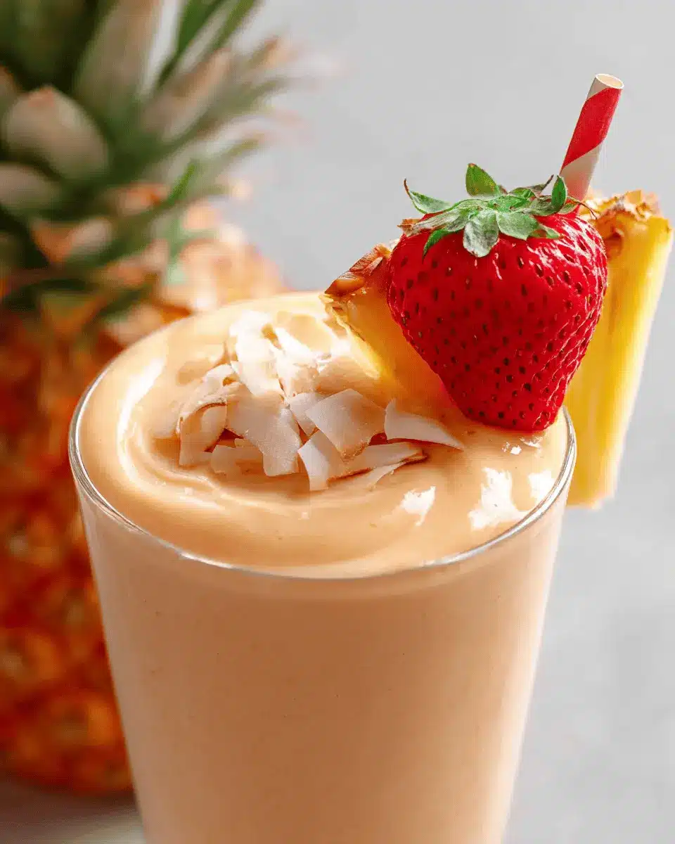 - Adjust with more coconut milk, pineapple, or orange juice as needed to reach the desired consistency.