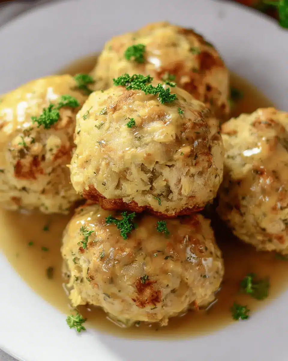 - Spoon hot gravy over the tops of the Turkey Stuffing Balls.