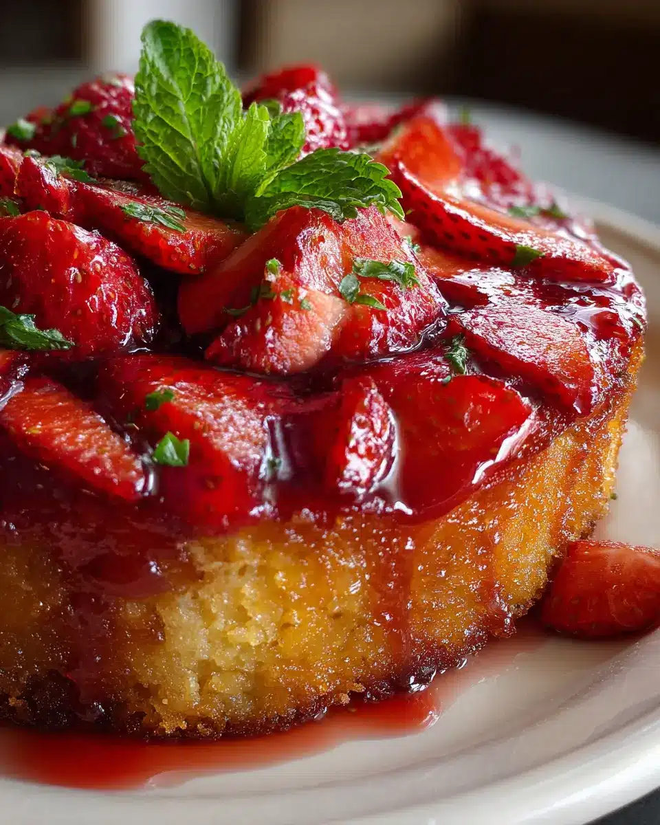 In summary, upside-down strawberry cake is a delightful twist on traditional desserts, featuring a stunning strawberry topping that shines. Perfect for gatherings or a cozy night in, this cake impresses with its sweet flavors and vibrant colors. Give it a try, and watch your friends' faces light up!