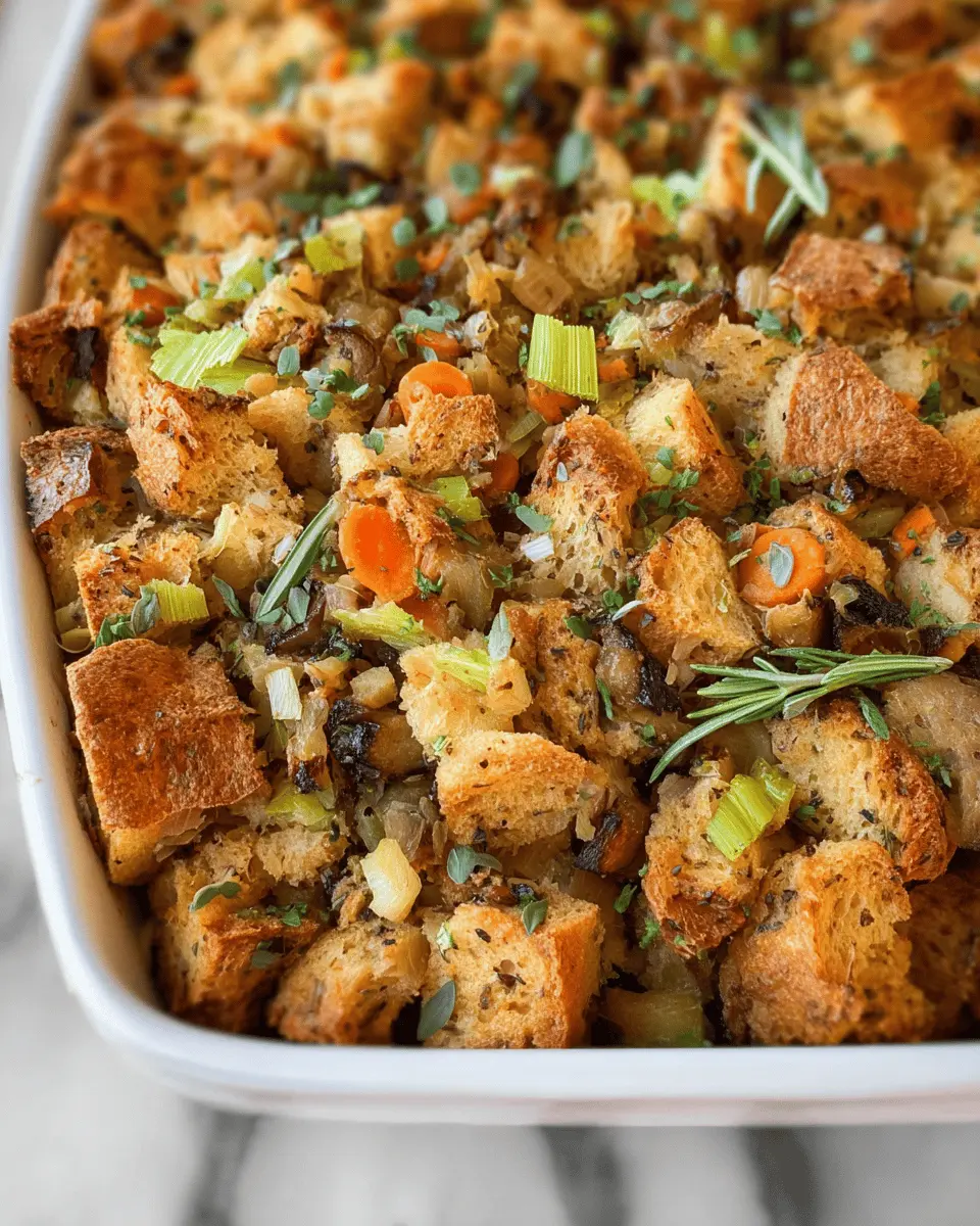 Following these steps will guide you to a savory, herb-infused vegetarian stuffing that’s bursting with flavor and texture. Whether enjoyed alone or as a side, it’s sure to please your guests and maybe even your pickiest eaters! For more flavorful recipes, consider checking out sites like EatingWell or Serious Eats.