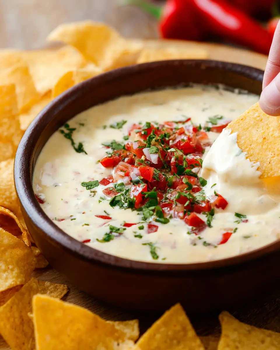 For more ways to elevate your white queso, check out this salsa recipe or explore healthy snack ideas.
